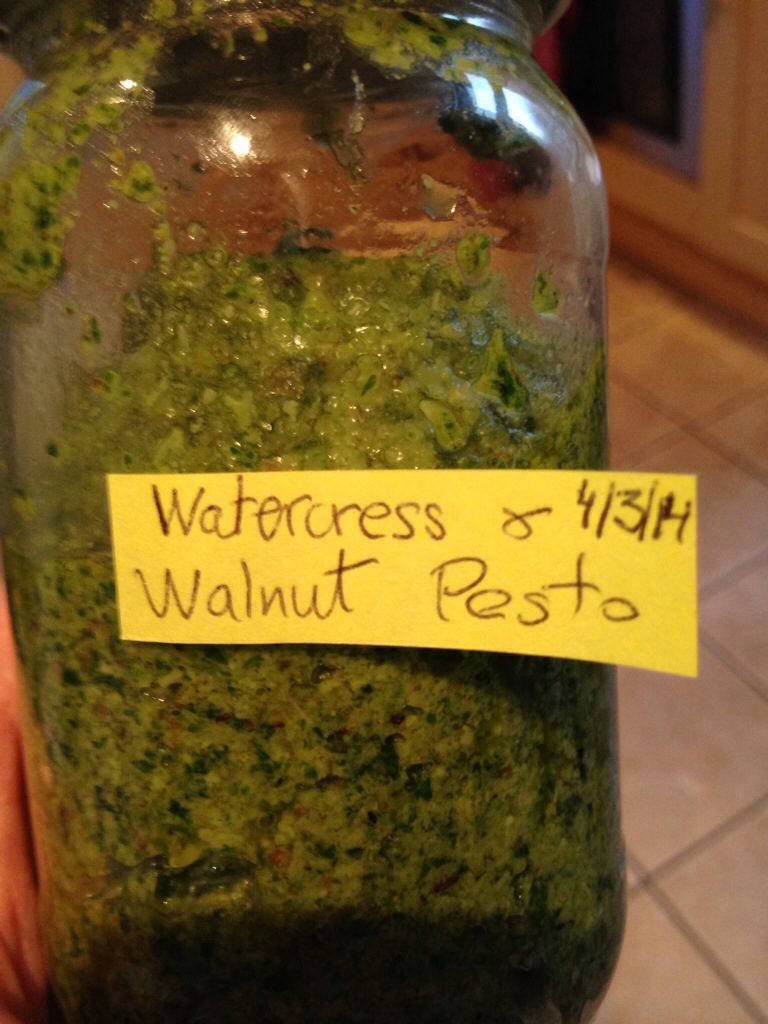 Nothing beats the fresh taste of homemade pesto. Since I had a bag of organic watercress in my organic box delivery and no pine nuts I had to improvise a bit.