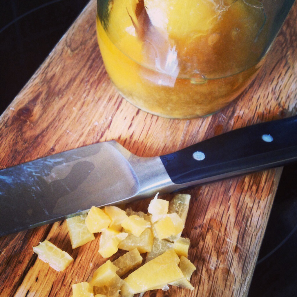 Yesterday I used some of the lemons I preserved last year to quickly roast a bit of lamb for lunch. It was so nice I didn’t even had the urge to take a picture and that is a rare occurrence this days. π